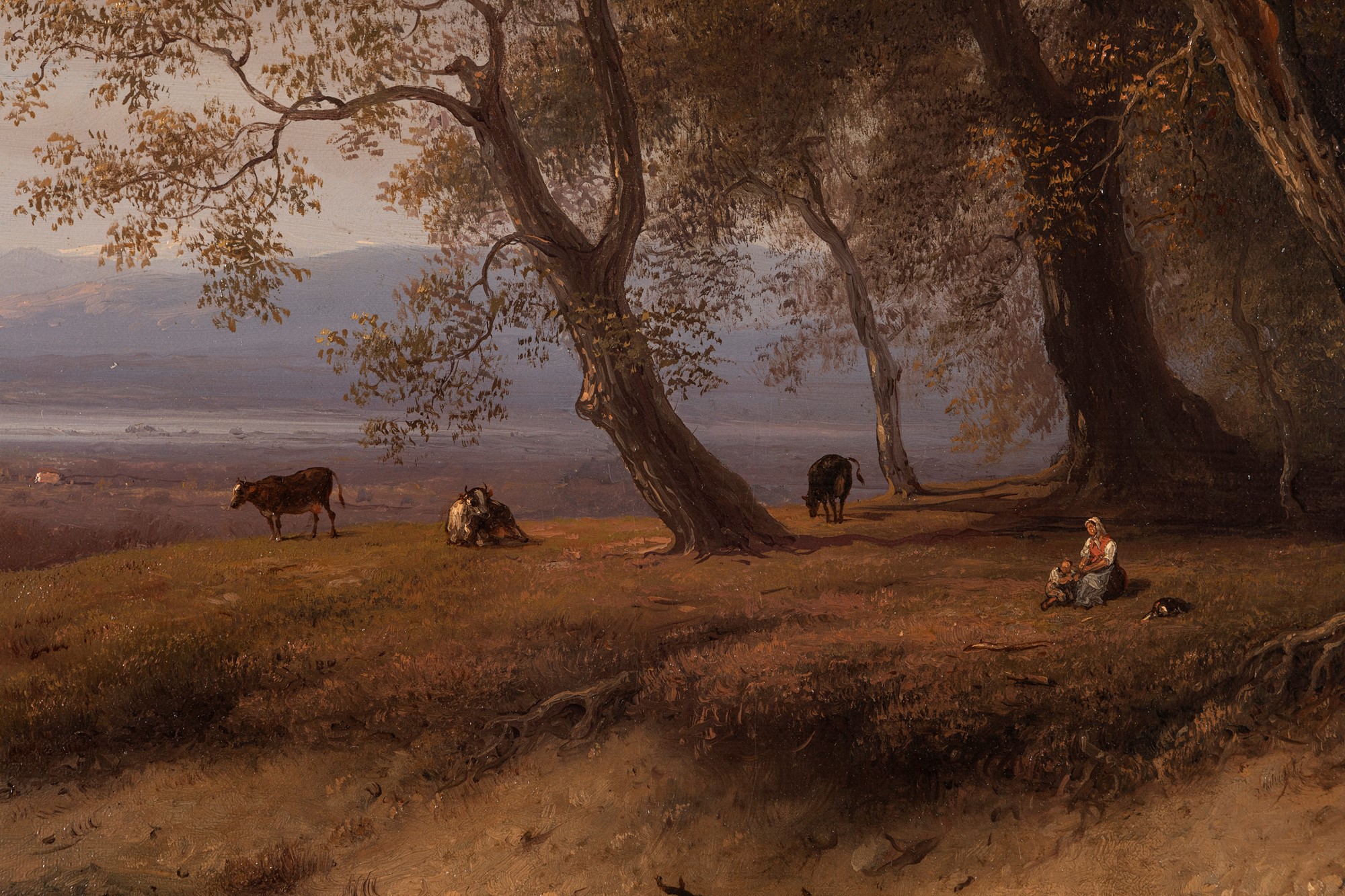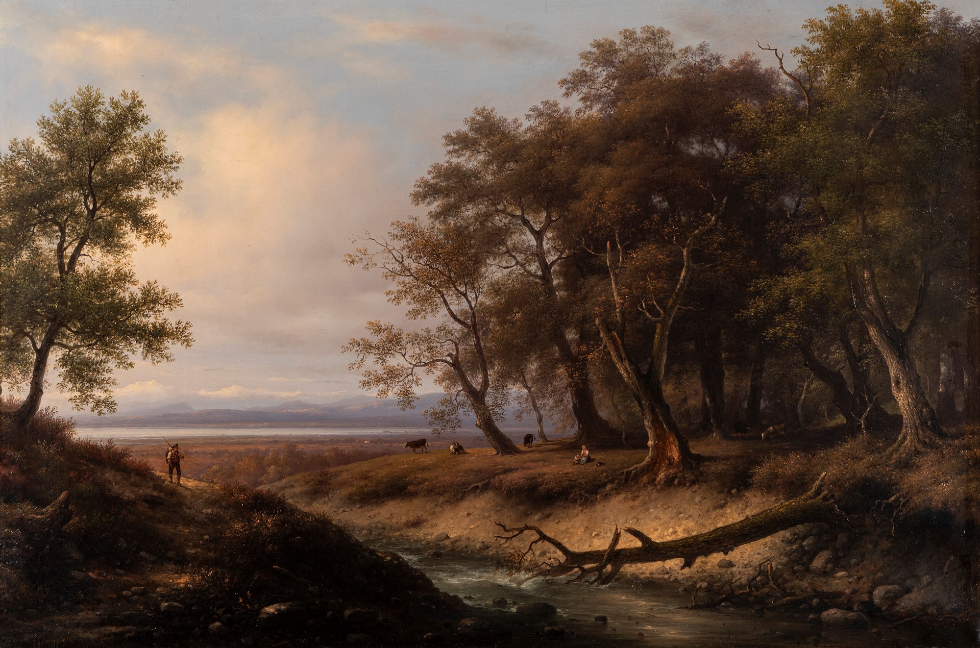 Giuseppe Canella (Verona 1788-Firenze 1847) - Paesaggio boscoso con figure e armenti, 1844
