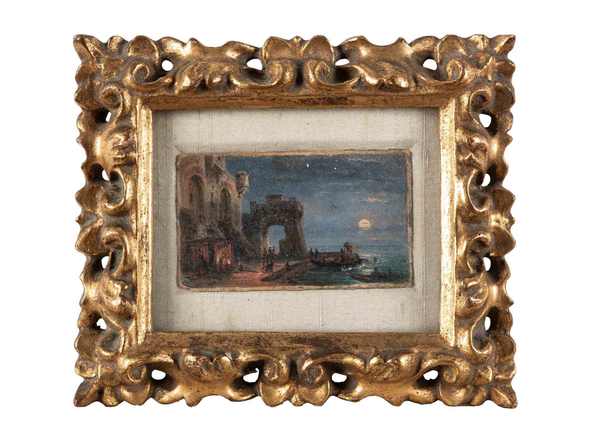 Giovanni Renica (Montirone 1808-Brescia 1884) - Notturno al porto