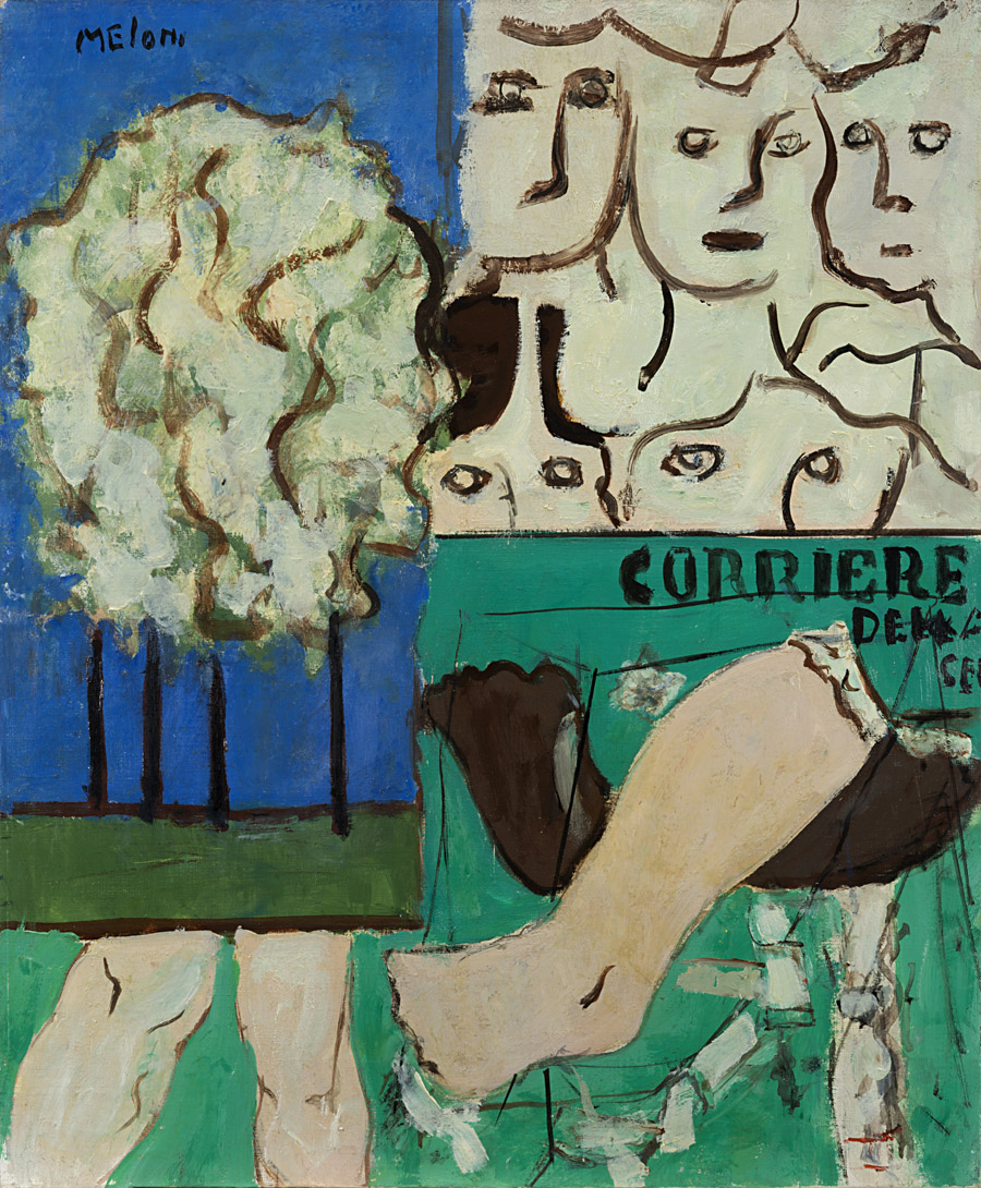 Gino Meloni , Varese 1905 , Lissone 1989 "Paesaggio" 1976 olio su tela, cm 65x54 Firmato in alto a sinistra. Firmato, titolato e datato 76 al retro Provenienza Galleria delle Ore, Milano