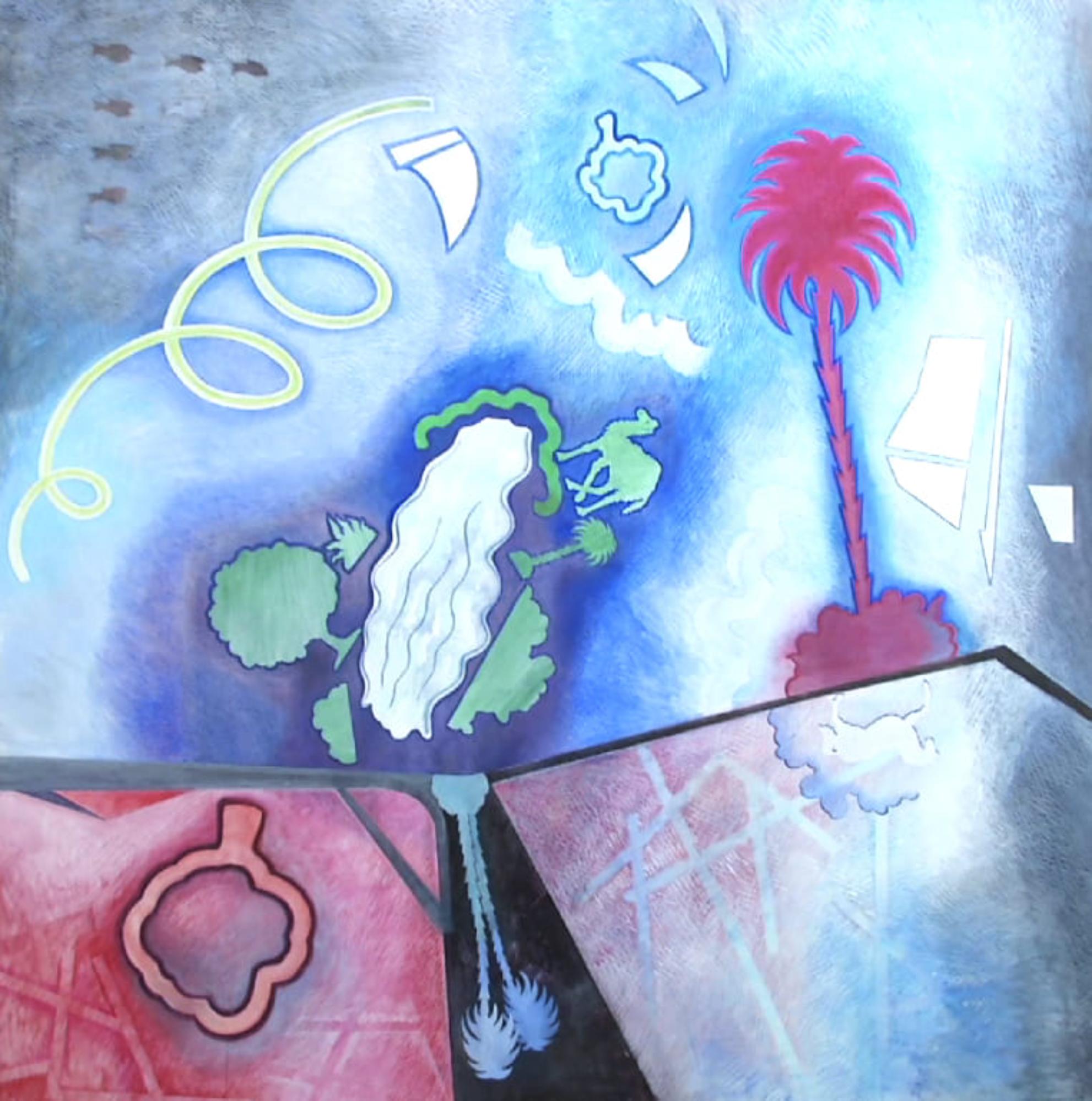 Gino Marotta, Oasi iperbolica, 2008, olio su tela, cm 190x190, opera pubblicata su catalogo 'POP ART. Una a 100 all'ora', 2015