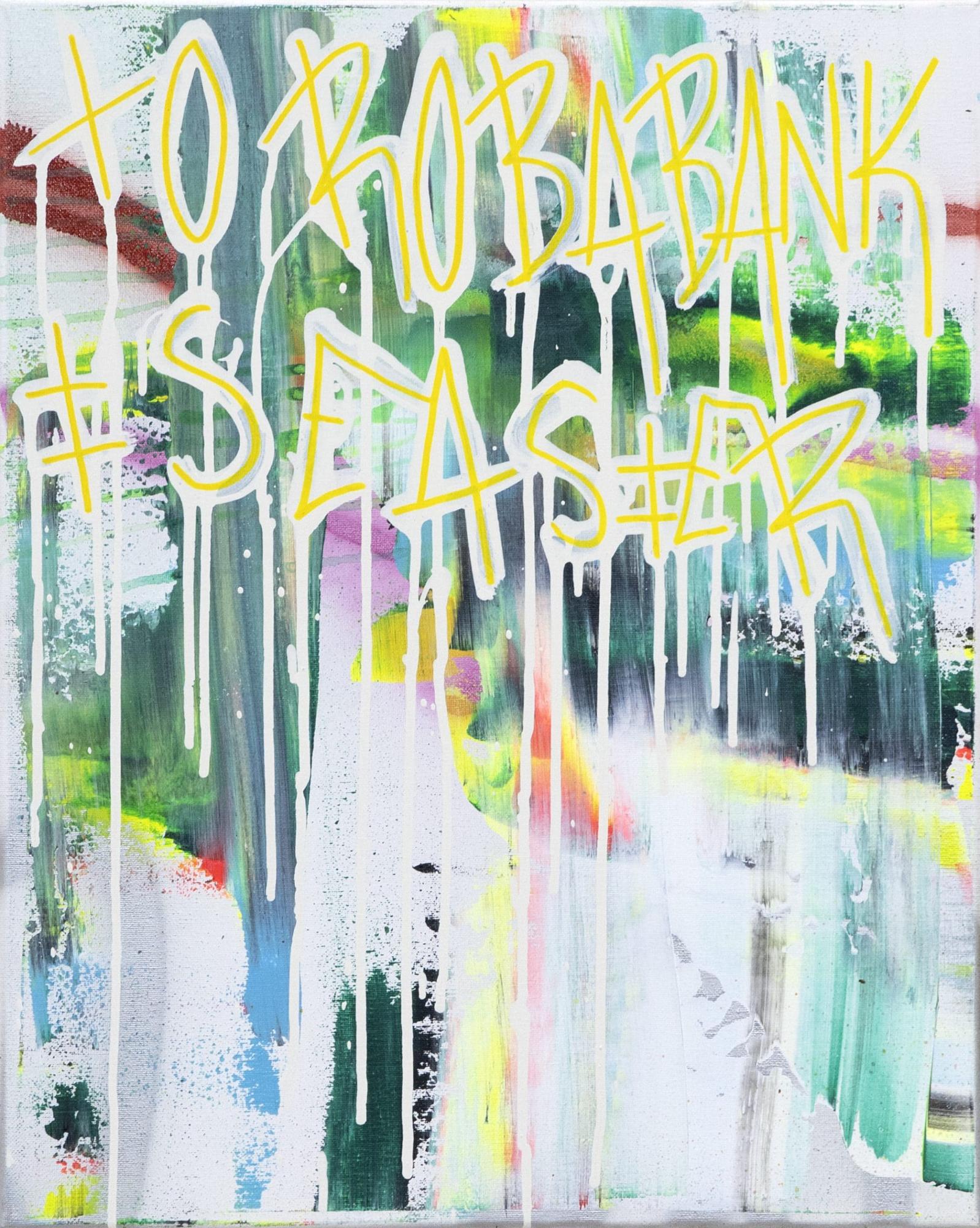 Karl Lagasse, To rob a bank, 2022, olio su tela, cm 40x50, autentica a cura dell'artista