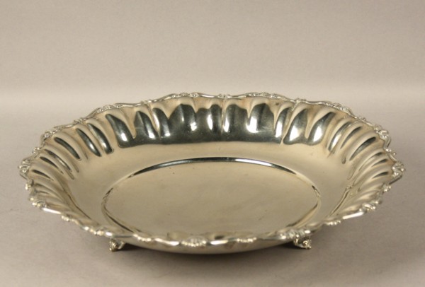 Centrotavola in argento sorretto da tre piedini, gr. 300 ca. XX secolo. Mis. Alt. cm. 5 Diam. cm. 26,5 ca.