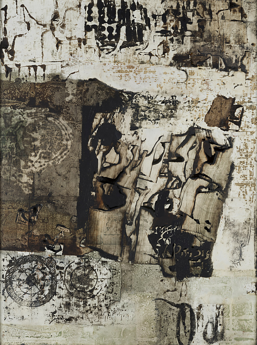 Lili Orszag , Ungvár 1926 , Budapest 1978 "Idotlen kep" 1969 olio su masonite, cm 80x60 Firmato in basso a sinistra. Firmato, titolato e datato 1969 al retro Provenienza Galleria Viotti, Torino Esposizioni III Kepzomuv. Trienn, Delhi 1975
