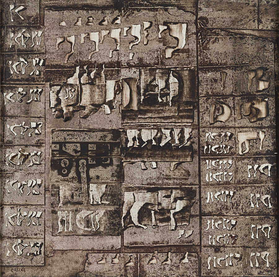 Lili Orszag , Ungvár 1926 , Budapest 1978 "Keplet" olio su masonite, cm 40x40 Firmato in basso a sinistra. Firmato e titolato al retro Provenienza Artex Artbureau, Budapest Galleria Viotti, Torino