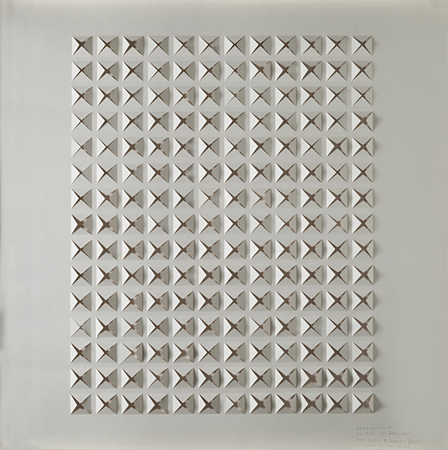 Dadamaino , Milano 1930 , 2004 "Rilievo" 1961-1975 cartoncino in rilievo, cm 68,5x68,5, prova d'artista Firmato, titolato, datato e dedicato in basso a destra