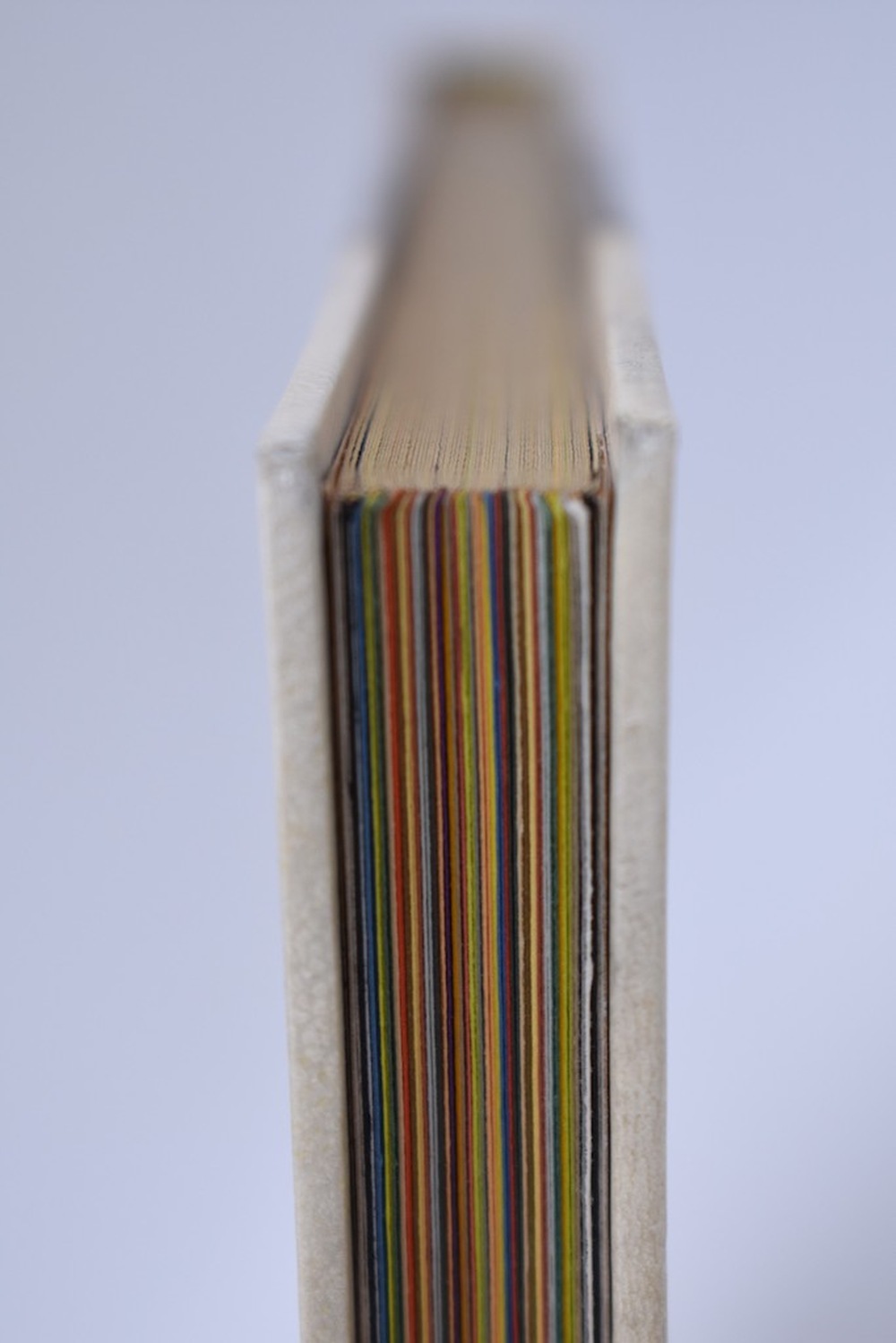 Edizione fuori commercio, tiratura numerata, es. n. 174/250 stampato su carte di 19 colori diversi. A cura di Vanni Scheiwiller. Esemplare rilegato in mezza pergamena con angoli, titoli in oro al dorso, taglio dorato, piatti e risguardi marmorizzati, con la brossura conservata.