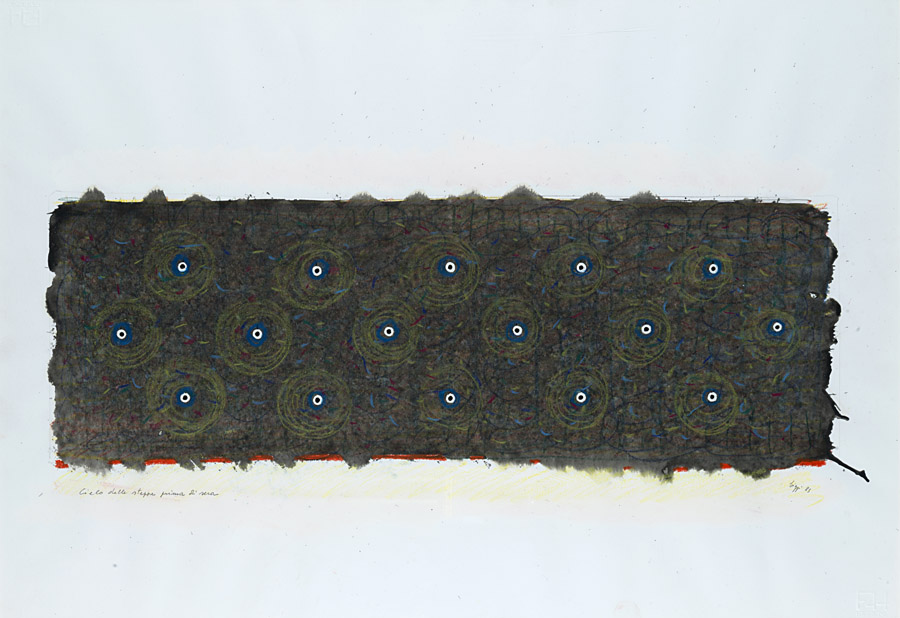 Gastone Biggi , Roma 1925 , "Cielo delle steppe prima di sera" 1985 tecnica mista su carta, cm 50x70 Firmato e datato 85 in basso a destra, titolato in basso a sinistra Provenienza Galleria Spazio Temporaneo, Milano Collezione privata, Milano