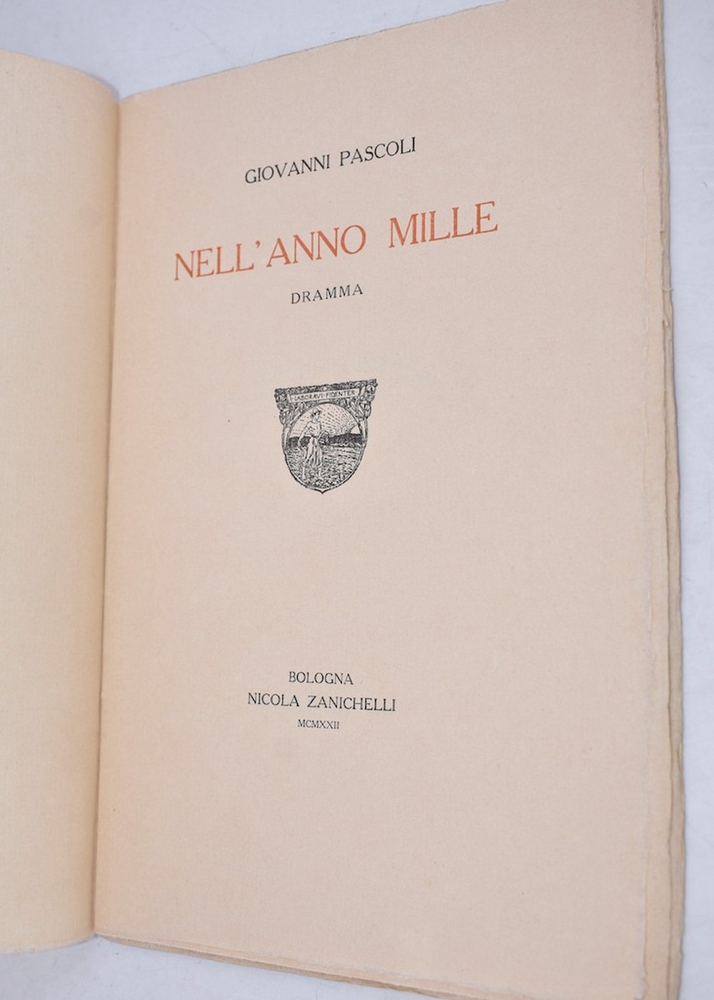 PASCOLI, Giovanni. NELL’ANNO MILLE. DRAMMA. [PER LE NOZZE MARCOVIGI - BONZANINI XXIII SETTEMBRE MCMXXII]. 1922.