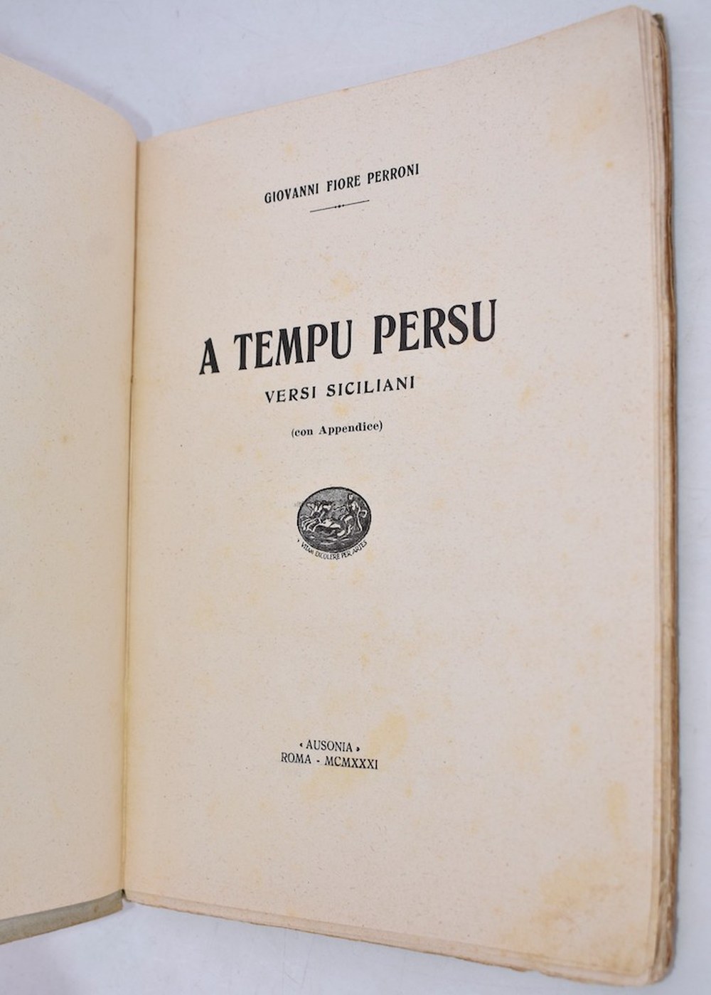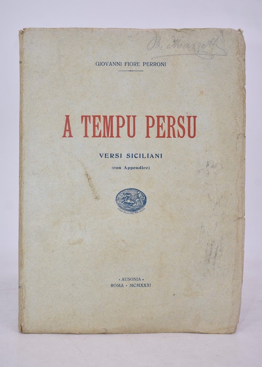 PERRONI, Giovanni Fiore. A TEMPU PERSU. VERSI SICILIANI (CON APPENDICE). 1931.