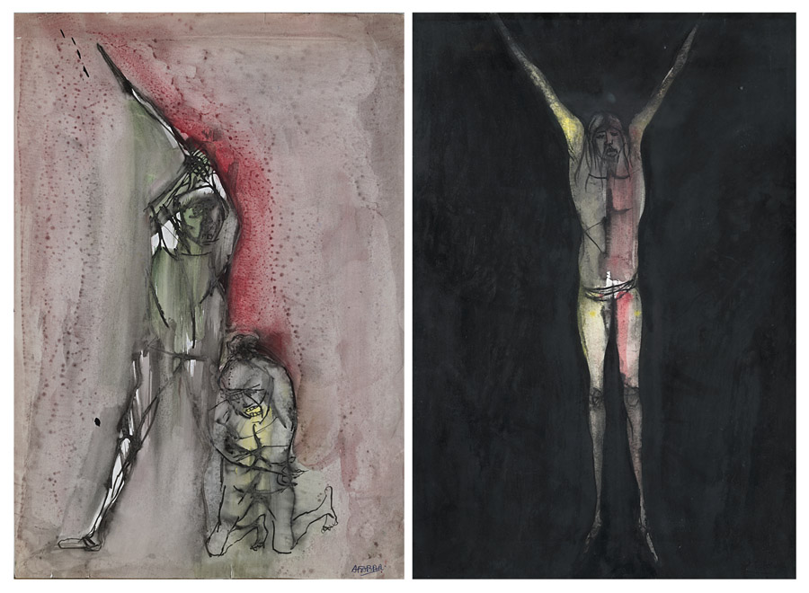 Agenore Fabbri , Pistoia 1911 , Savona 1998 Lotto di 2 tecniche miste su carta. Entrambe firmate in basso a destra (cm 50x32, cm 48,5x34) Le opere sono archiviate presso l'Archivio Agenore Fabbri presso il MART di Rovereto e a cura di Luca Fabbri