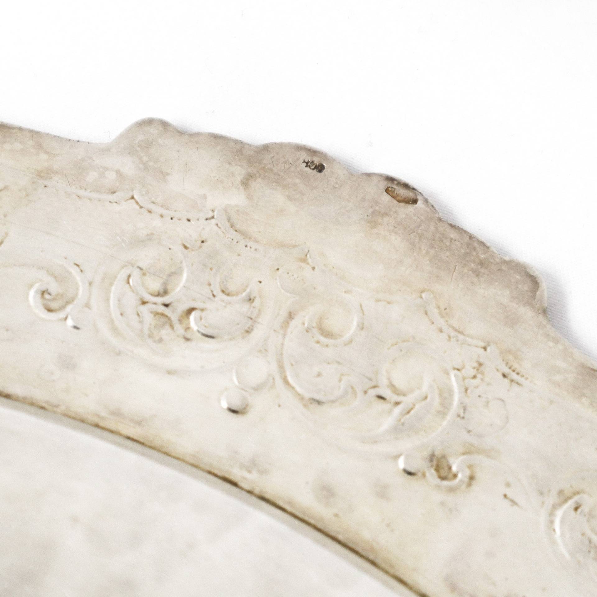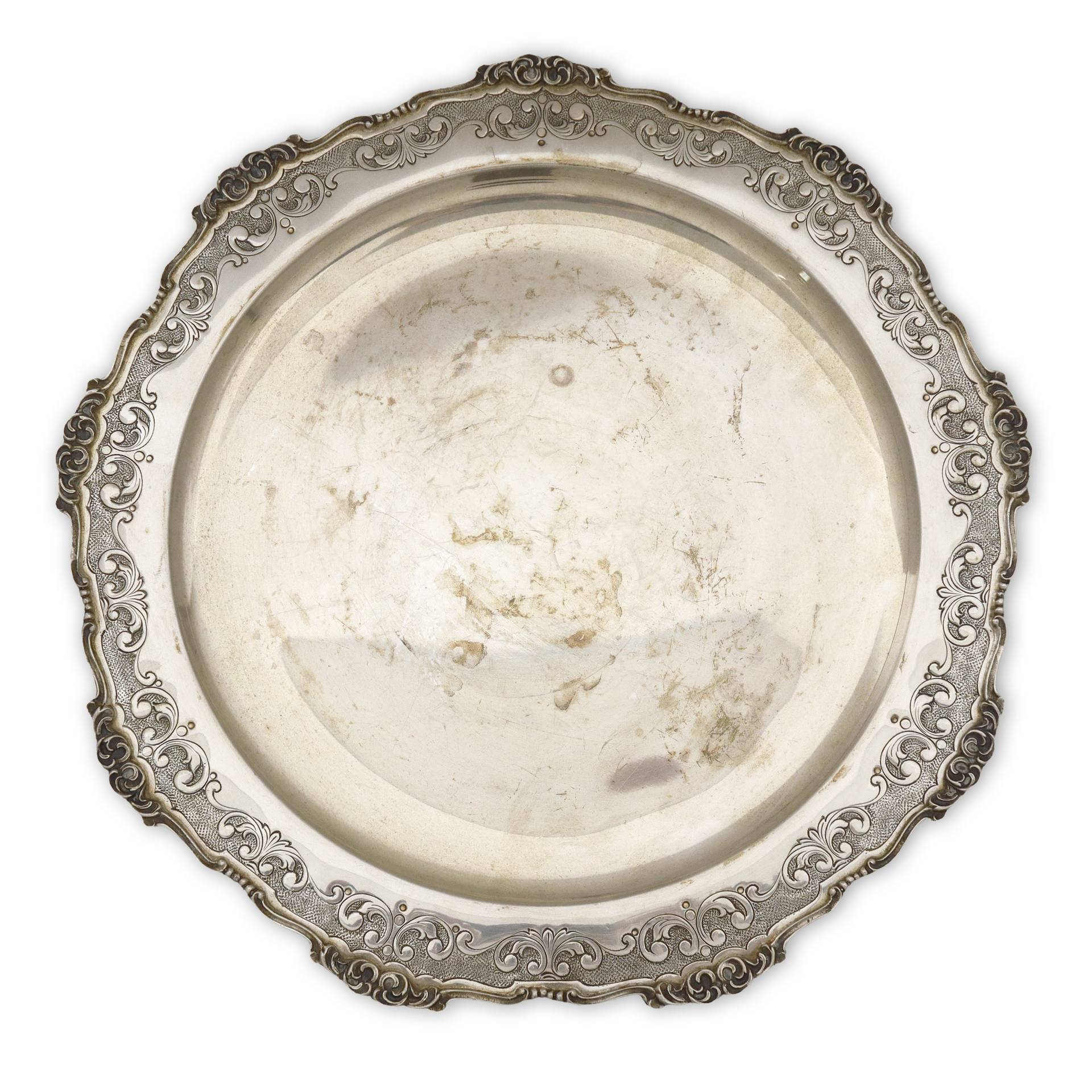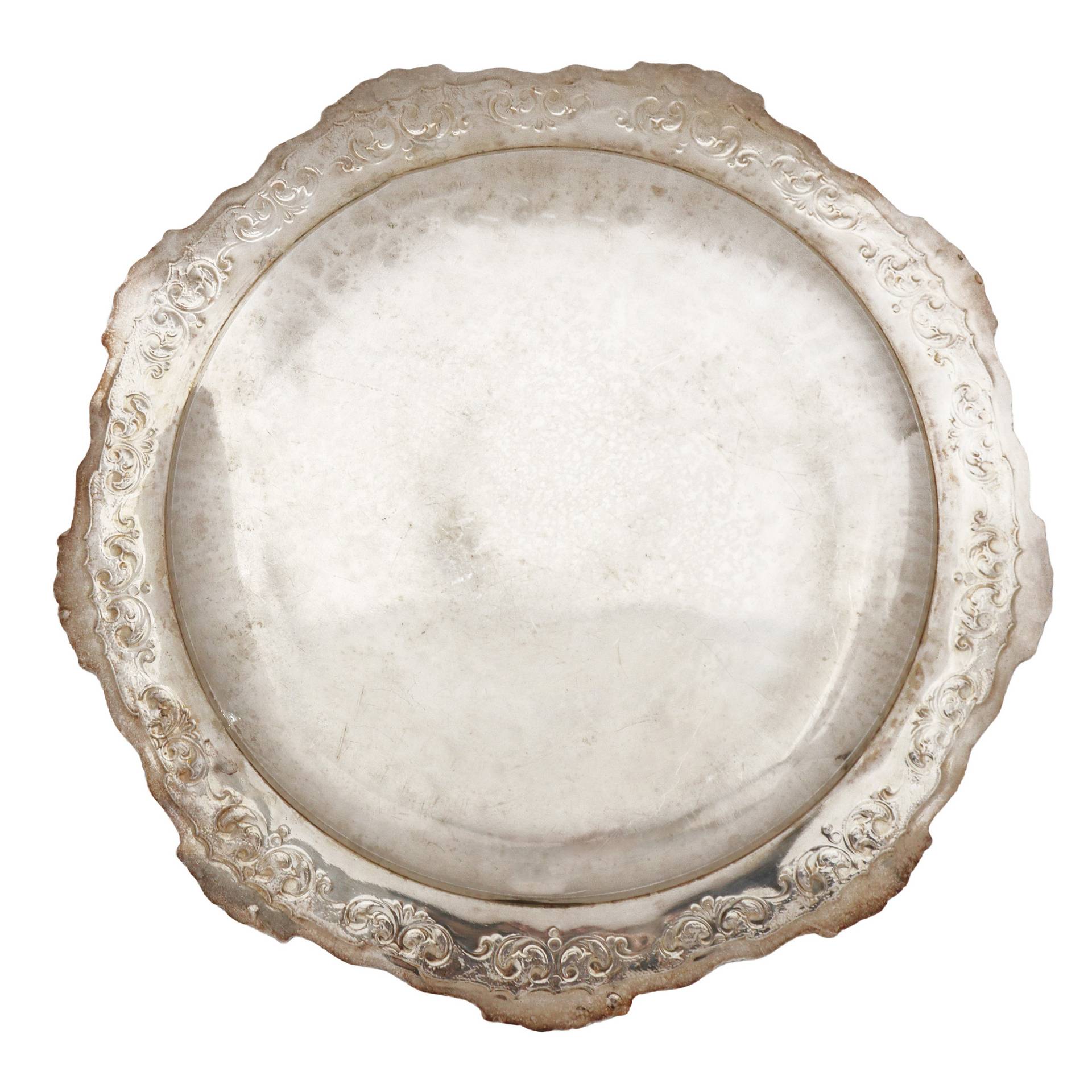 Vassoietto rotondo in argento con bordo bulinato e sbalzato