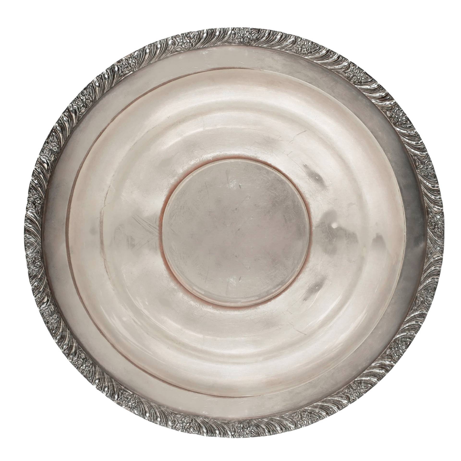 Piatto centrotavola in argento, bordo a doppio strato decorato con motivi floreali