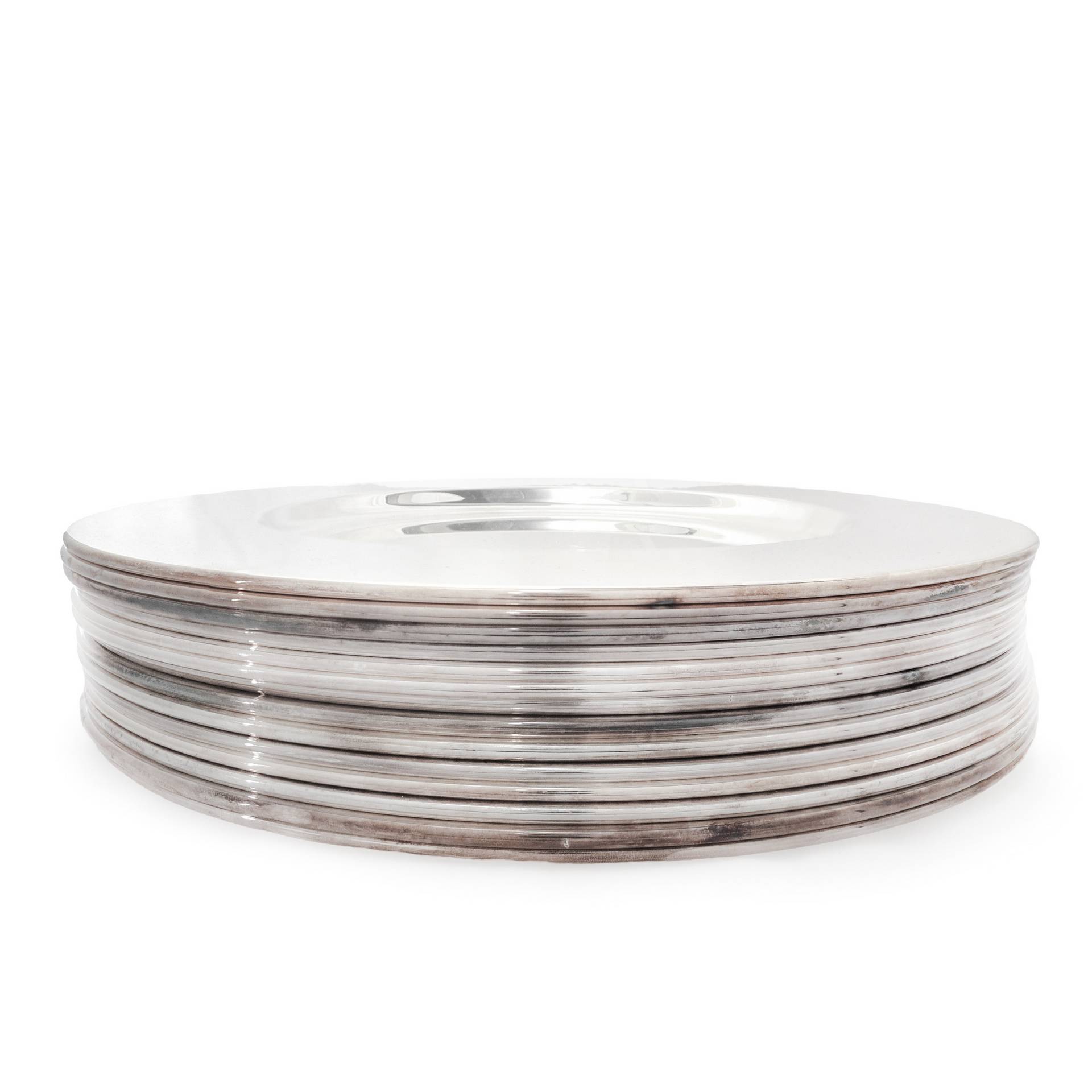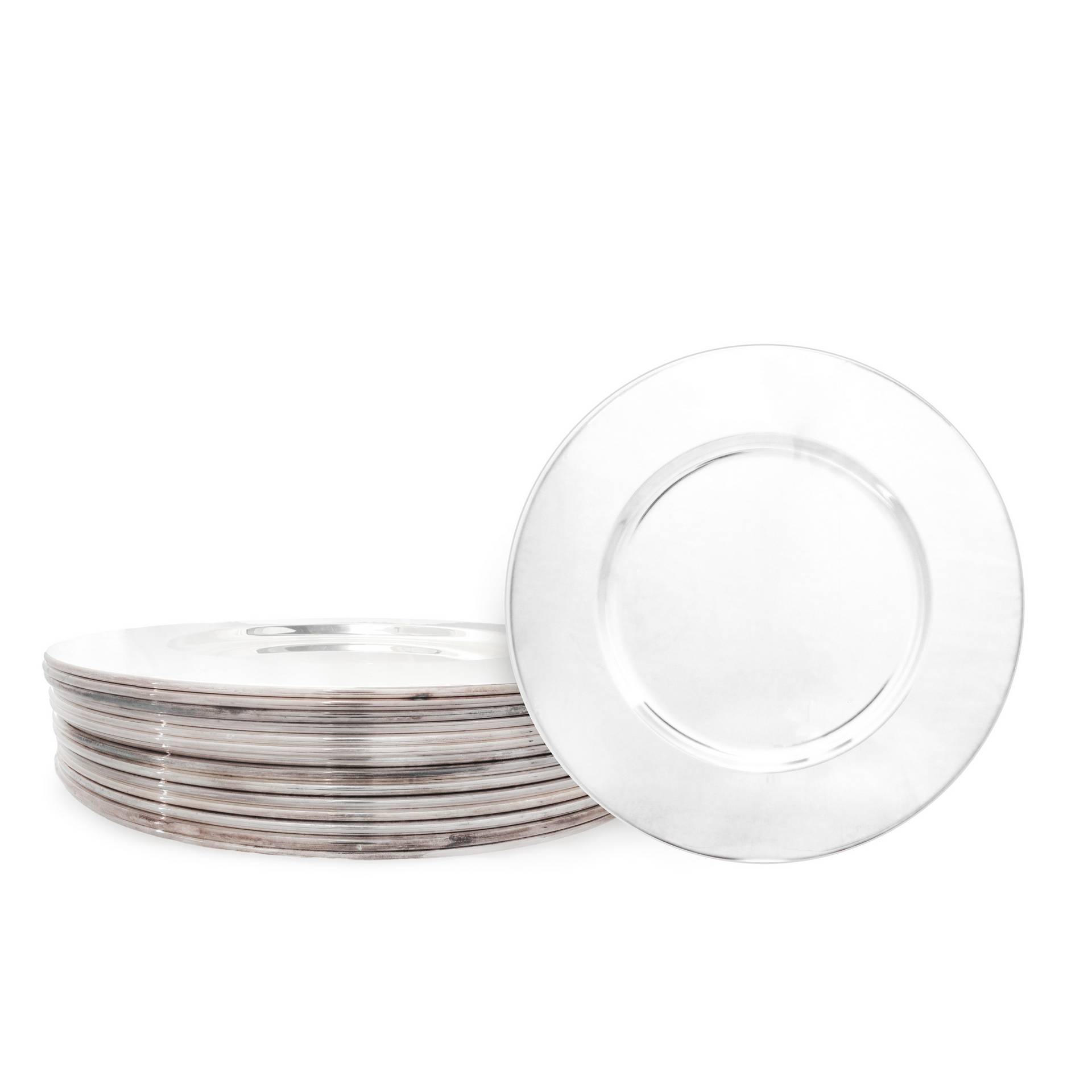 Zanetto (Padova 1963) - Set di 14 sottopiatti in lega argentata, modello "Set tavola Italia" H cm 32 x 31 Marchio della manifattura; Presenta segni d'usoMarchio della manifattura; Presenta segni d'uso