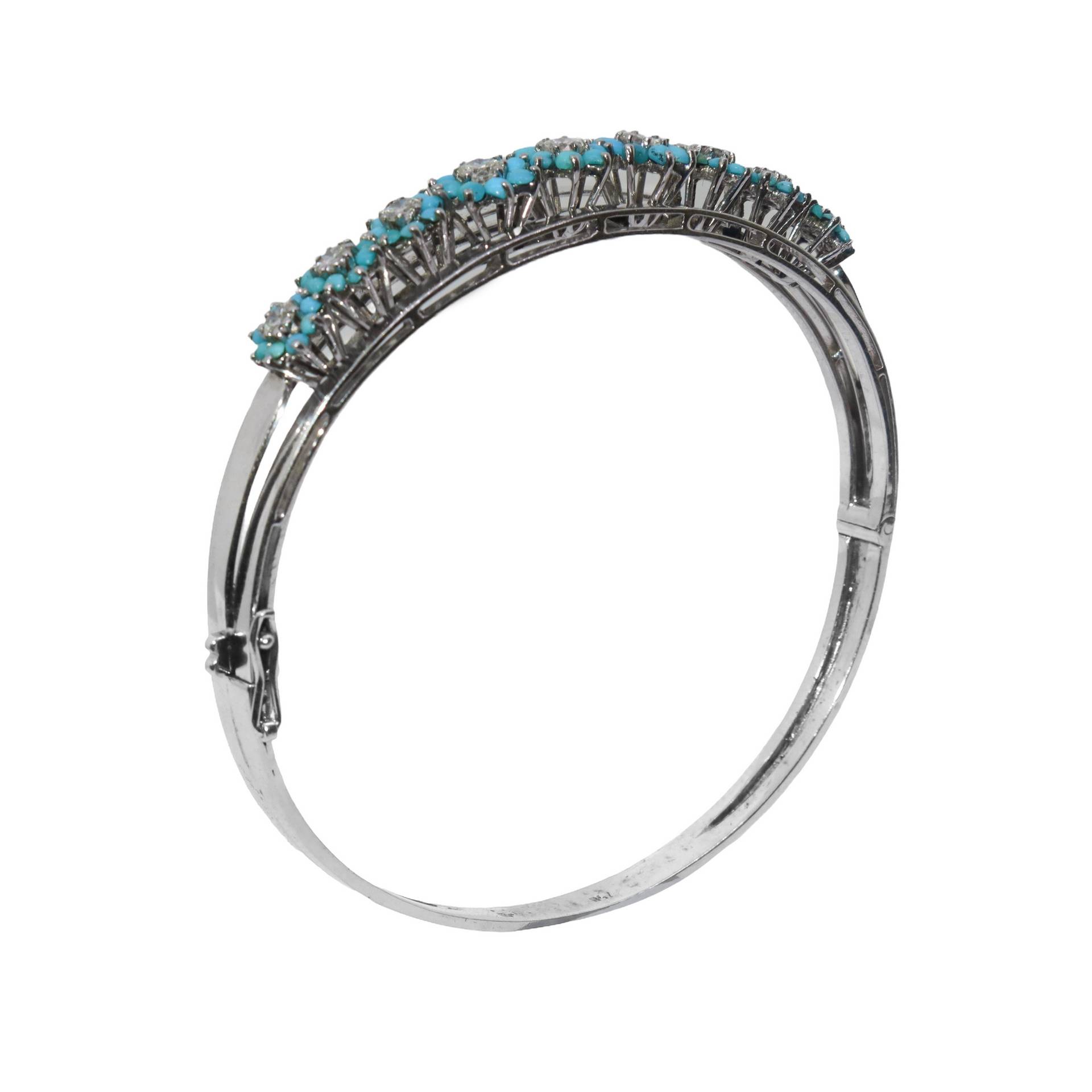 Lot 137 | Bracciale in oro bianco con piccole roselline con al centro brillante e turchesi