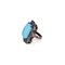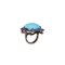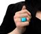 Anello in oro e coppella con grosso turchese rettangolare circondato da diamantine, 70's