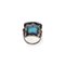 Anello in oro e coppella con grosso turchese rettangolare circondato da diamantine, 70's gr 10,5 - cm 2,9x2x5
