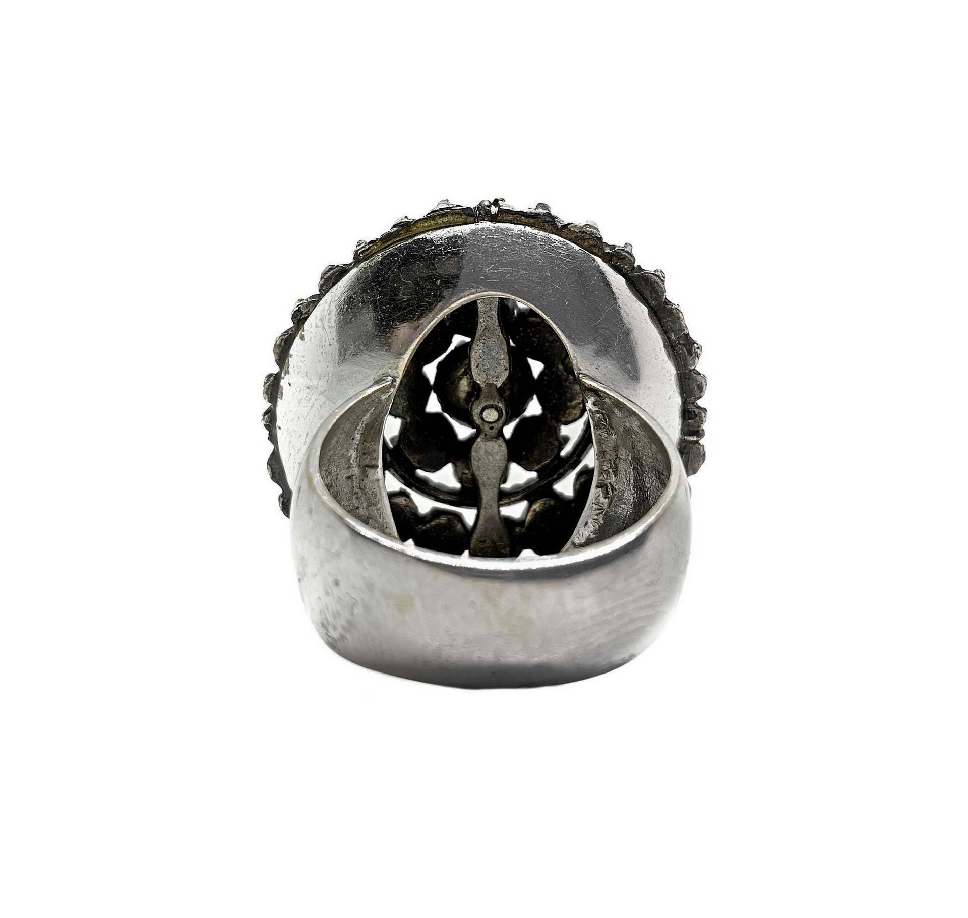 Anello a cuspide in argento e brillanti Gr 16.5 Lavorazione in stile antico.Lavorazione in stile antico.