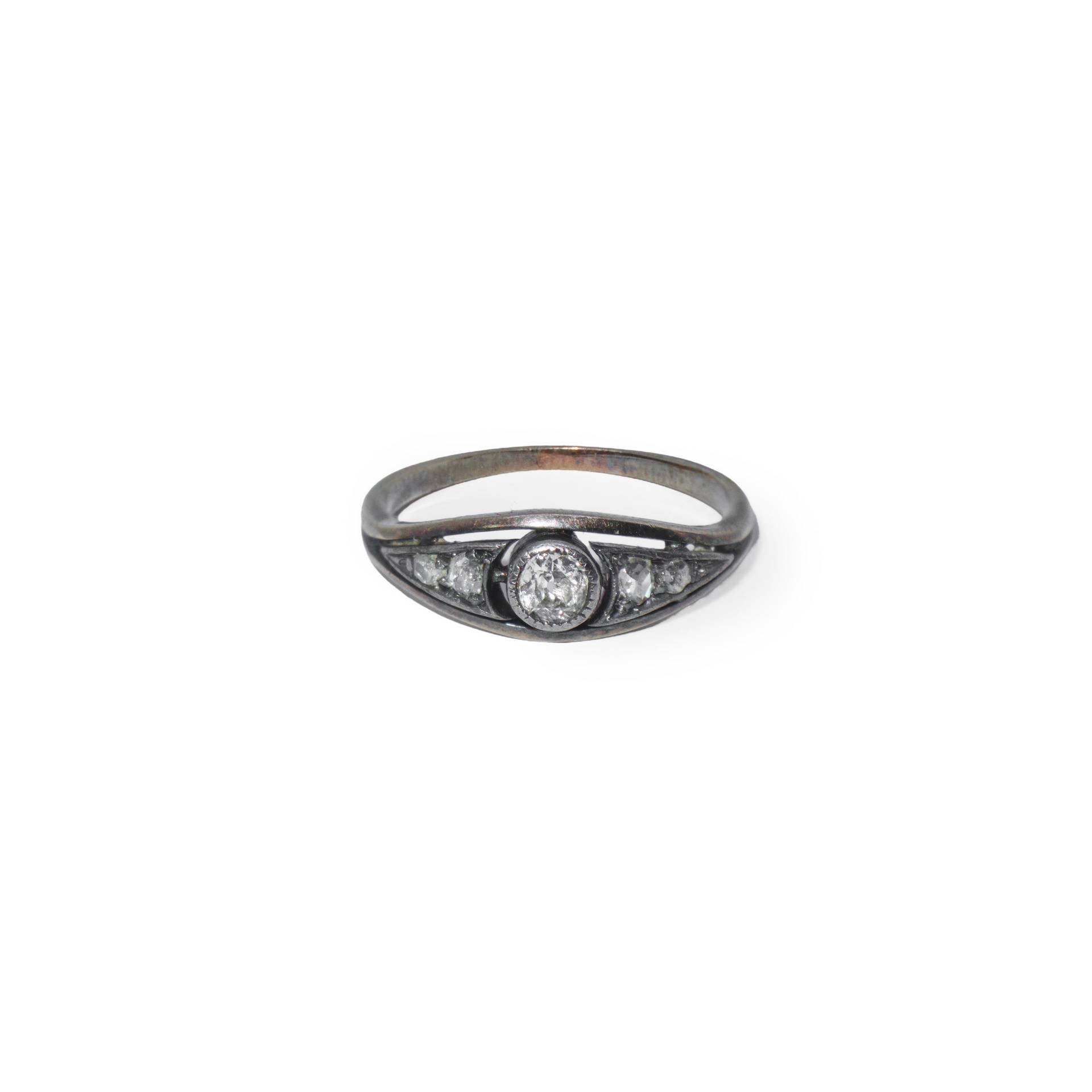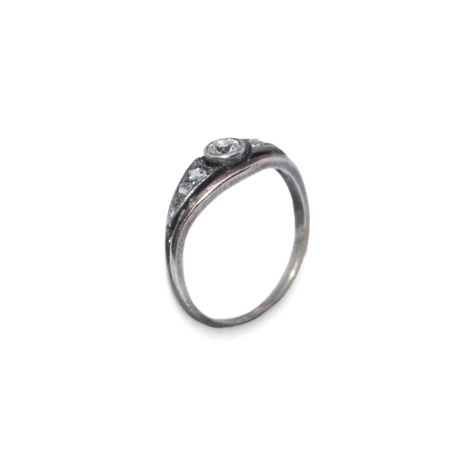 Anello in oro basso titolo con brillante antico centrale di carati 0,18 circa e diamantine 2,4 gr