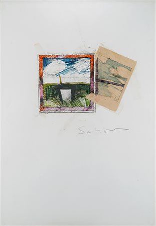 Mario Schifano , Homs 1934 , Roma 1998 "Senza titolo" 1972-73 tecnica mista e collage su carta, cm 100x70 Firmato al centro Provenienza Galleria Giò Marconi, Milano L'opera è accompagnata da certificato di autenticità su fotografia rilasciato da Giò Marconi L'opera è accompagnata da certificato di autenticità su fotografia rilasciato dall'Archivio Generale dell'Opera di Mario Schifano, Roma con il n.02644140508