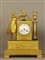 Orologio da tavolo in bronzo dorato con allegoria di putti alla base e sculture raff. ''COLONNA CON VERSATOIO E VESTALE''. Quadrante smaltato con numeri romani. Periodo Impero. Da revisionare. Mis. Lung. cm. 26 Alt. cm. 35 Prof. cm. 11 ca.