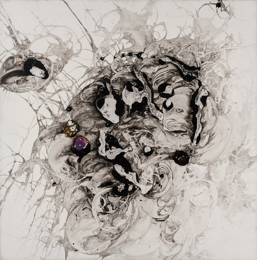 Gianni Dova , Roma 1925 , Milano 1991 "Composizione nucleare" 1952 olio su tela, cm 70x70 Firmato e datato 52 in basso a destra Provenienza Galleria Levi, Milano L'opera è accompagnata da certificato di autenticità su fotografia rilasciato dall'Archivio per il Catalogo Ragionato di Gianni Dova, Milano