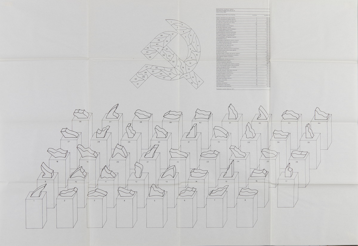 Edizione realizzata in occasione della prima mostra della serie di sculture "44 valutazioni", presso la Galleria Plura, Milano, il 25 maggio 1977, esposte poi alla Biennale di Venezia del 1978. Tiratura non presente.