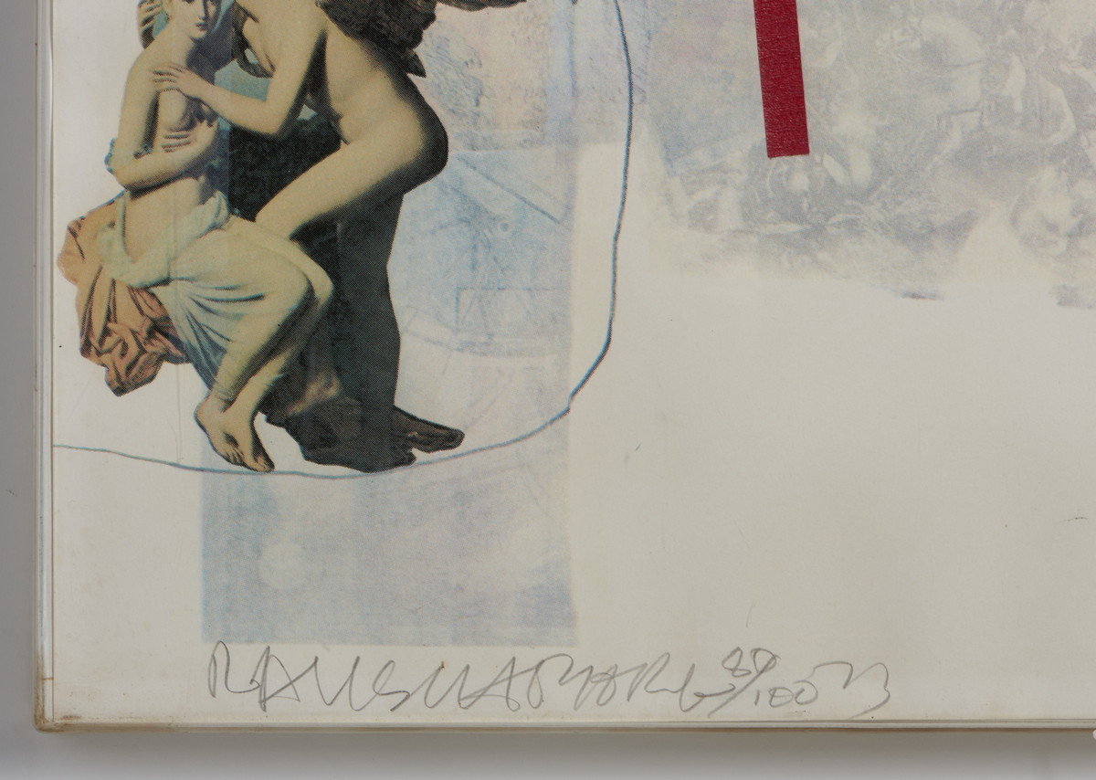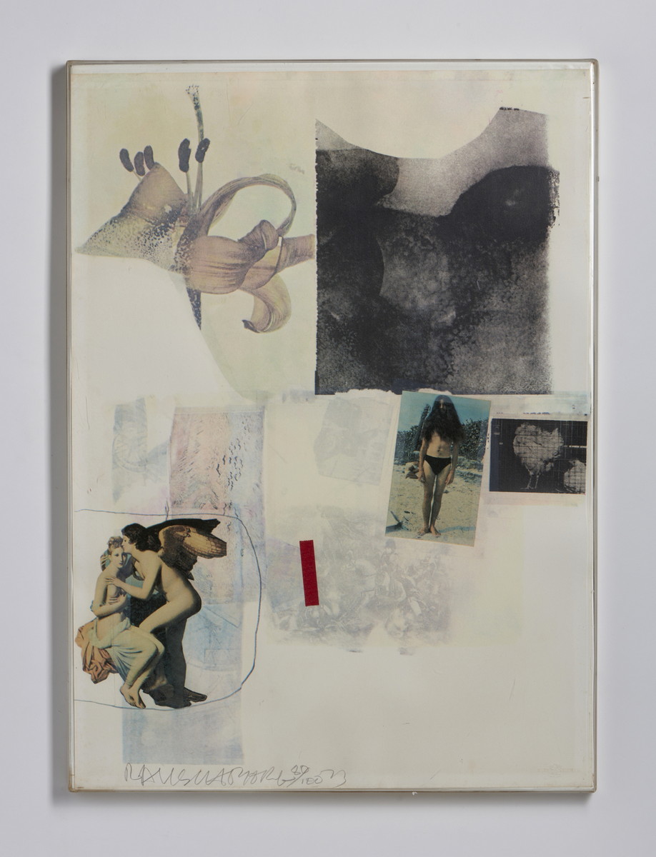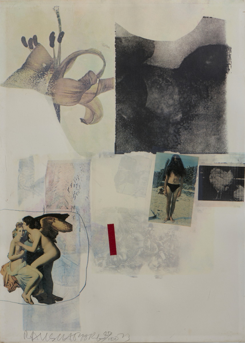 RAUSCHENBERG ROBERT (1925 - 2008) SENZA TITOLO (BRADEMAS), 1973. Serigrafia e collage. Cm 51,50 x 71,60. firma e tiratura a matita, es. 80/100.
