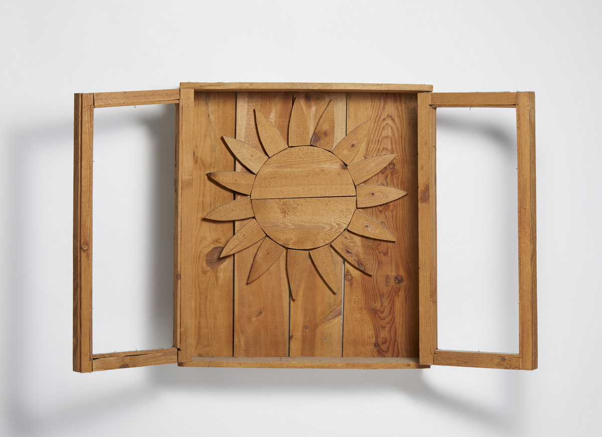CEROLI MARIO (n. 1938) SOLE NELLA FINESTRA, 1971. scultura in legno. Cm 71,20 x 80,50 x 14,20. firma, tiratura e data, es. 58/180.