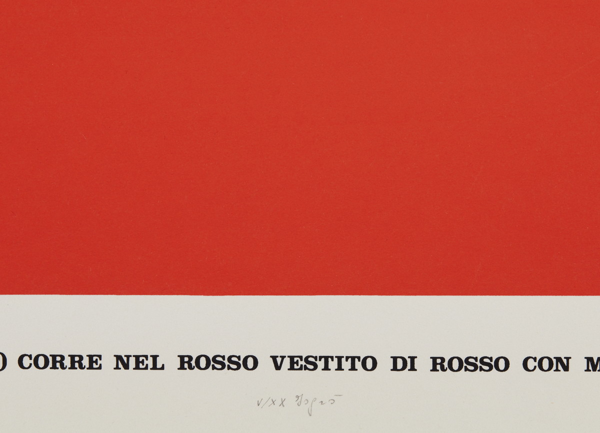 ISGRO' EMILIO (n. 1937) GORBACIOV CORRE NEL ROSSO ( CICLO STORIE ROSSE), 1990. Serigrafia cinetica a colori. Cm 44,00 x 34,00. firma e tiratura in basso a matita, es. V/XX.