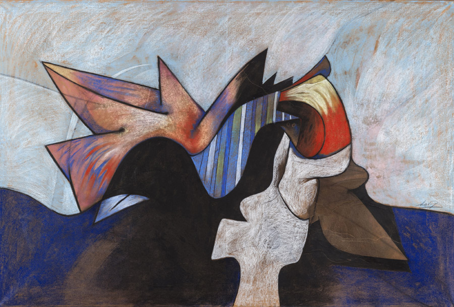 Gianni Dova , Roma 1925 , Milano 1991 "Senza titolo" tecnica mista su carta intelata, cm 100,5x150,5 Firmato in basso a destra L'opera è accompagnata da certificato di autenticità su fotografia rilasciato da Francesco Cafiso in data 6/03/13