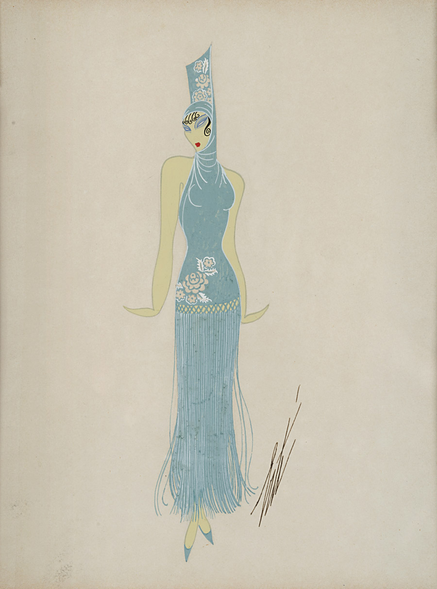 Ertè , San Pietroburgo 1892 , Parigi 1990 "Danseuse espagnole" 1938 tecnica mista su carta, cm 30,5x23,5 Firmato in basso a destra. Titolato e datato 1938 al retro Provenienza Galleria S.Carlo, Milano Collezione privata, Milano L'opera è accompagnata da certificato di autenticità su fotografia rilasciato dell'artista