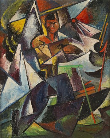 Giovanni Varvaro , Palermo 1888 , 1973 "Composizione futurista" fine anni '20 olio su masonite, cm 41x33 Firmato in basso a destra Bibliografia G.Jurato e P.Bonaiuto "Ottocento siciliano. Artisti siciliani dell'800"