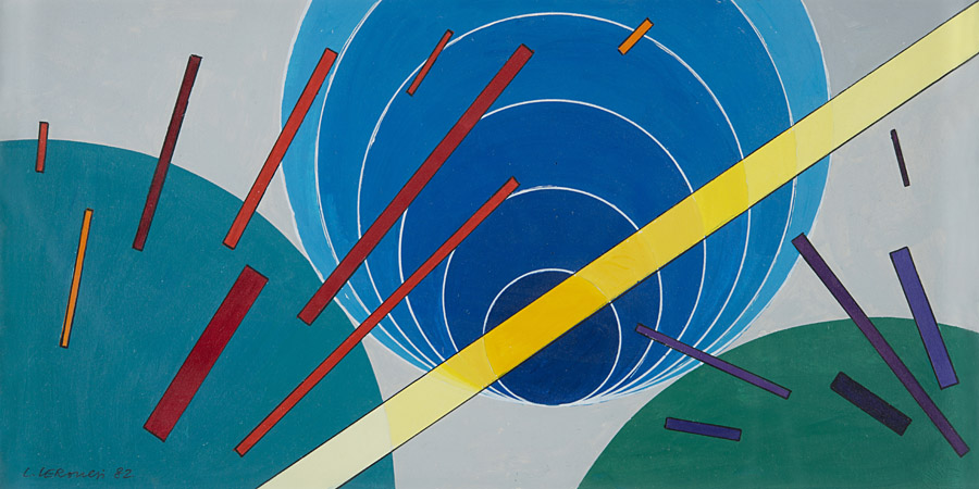 Luigi Veronesi , Milano 1908 , 1998 "Senza titolo" 1982 olio su cartone, cm 26x36,5 Firmato e datato 82 in basso a sinistra L'opera è accompagnata da certificato di autenticità su fotografia rilasciato dall'artista. L'opera è accompagnata da certificato di autenticità su fotografia rilasciato dal Comitato Luigi Veronesi, Milano con il n.1982/43