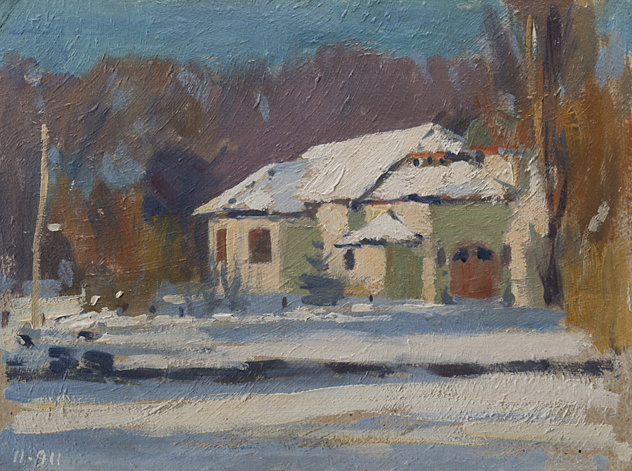 Giorgio Morandi , Bologna 1890 , 1964 "Paesaggio di neve" 1911 olio su cartone, cm 24,2x33,8 Datato 11-911 in basso a sinistra L'opera è accompagnata da certificato di autenticità su fotografia rilasciato da Marilena Pasquali del Comitato per il Catalogo di Giorgio Morandi, Bologna in data 13.02.14 L'opera sarà riprodotta nell'appendice del Catalogo Generale di Giorgio Morandi di prossima pubblicazione