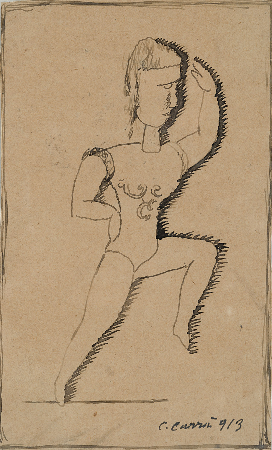 Carlo Carrà , Quargnento 1881 , Milano 1966 "Ballerina II" 1913 inchiostro su carta, cm 18,6x11 Firmato e datato 913 in basso a destra Provenienza Famiglia Carrà, Milano Galleria Arte centro, Milano Collezione privata, Milano Esposizioni "Carlo Carrà Retrospektive" Staatliche Kunstalle Baden-Baden 1987, cat. n.142 p.228 Bibliografia F.Russoli "Carrà. Disegni" Grafis Arte, Bologna 1977, n.82 p.149 ill.