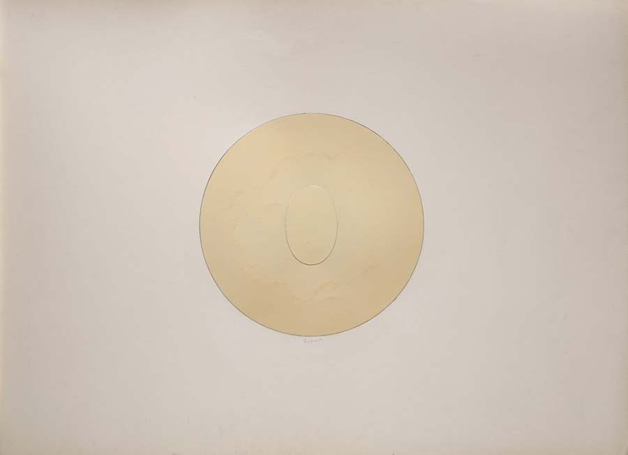 Turi Simeti , Alcamo 1929 , "Un ovale" anni '70 smalto e collage su carta, cm 68x94 Firmato al centro Collezione privata, Milano L'opera è accompagnata da certificato di autenticità su fotografia rilasciato dall'Archivio Turi Simeti, Milano a cura della Galleria Dep Art con il n.1970-CGE0681