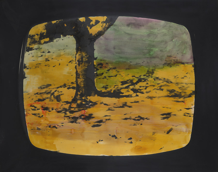 Mario Schifano , Homs 1934 , Roma 1998 "Paesaggio TV" 1970 smalto e aniline su tela emulsionata, perspex, cm 115x145 Firmato e datato 70 al retro Provenienza Studio Marconi, Milano Esposizioni "Schifano. Paesaggi TV" Studio Marconi, Milano, dicembre 1970 "Mario Schifano" a cura di Arturo Carlo Quintavalla, Istituto di Storia dell'Arte - Salone delle Scuderie in Pilotto, Università di Parma, Parma, febbraio - marzo 1974 Pubblicazioni "Schifano Paesaggi TV" catalogo della mostra Studio Marconi, Milano 1970 "Mario Schifano" catalogo della mostra Istituto di Storia dell'Arte Università di Parma, Parma 1974 cat. n.230 L'opera è accompagnata da certificato di autenticità su fotografia rilasciato dall'Archivio Generale dell'Opera di Mario Schifano, Roma con il n.02643140508