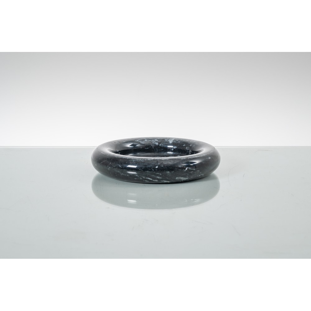 Svuota tasche in marmo nero Marquina, corpo circolare con spesso bordo.