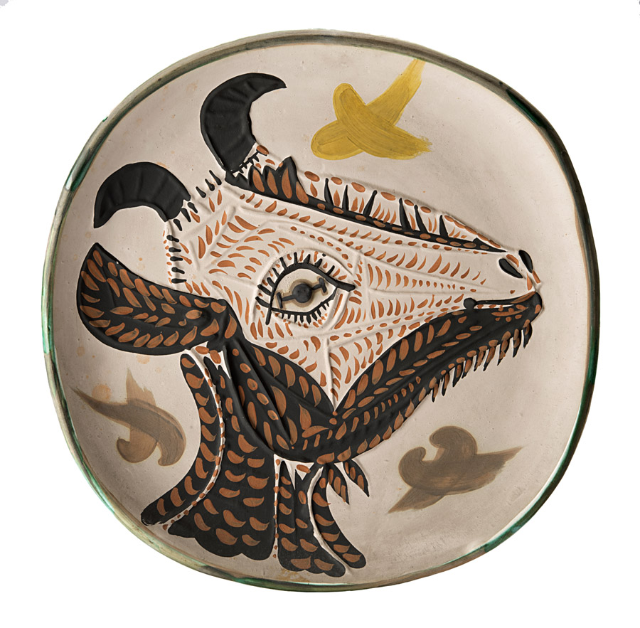 Pablo Picasso , Malaga 1881 , Mougins 1973 "Tête de chevre de profile" piatto...