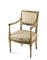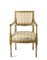 Poltrona in legno intagliato, dipinto e dorato, schienale squadrato sormontato