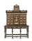 A Spanish metal-mounted rosewood, bone and tortoiseshell inlaid ebonised cabinet on stand. 19th century. Cabinet of architectural form with a cresting inlaid with the initial F.Y. surmounted by a crown, above a central door with a niche surmounted by the coat of arms of Ferdinand V, King of Aragon (1452-1516) and Ysabella I, Queen of Castile (1451-1504) (cm 175x238x58) (defects and restorations)