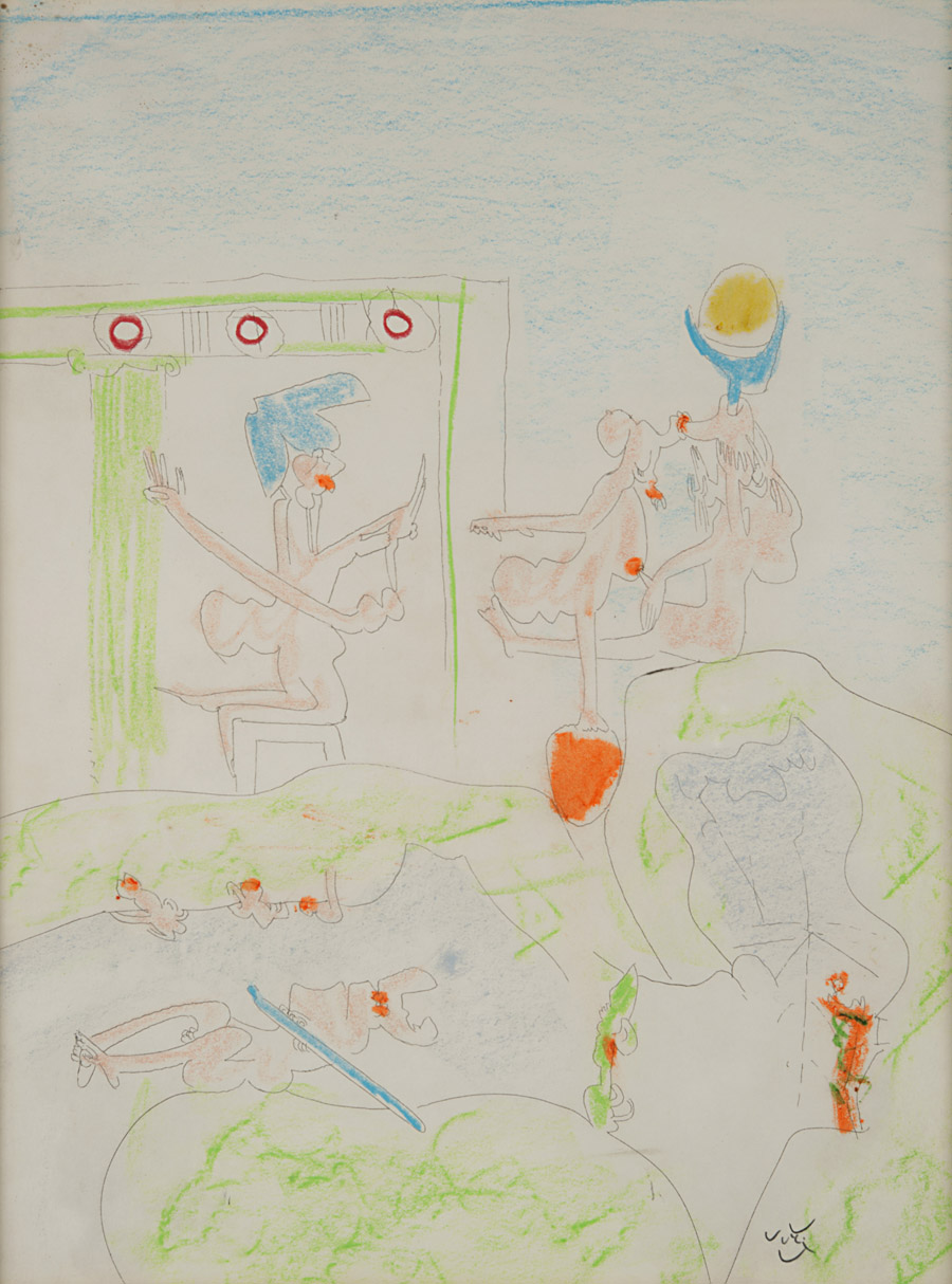 Roberto Matta , Santiago del Cile 1911 , Civitavecchia 2002 "Senza titolo" tecnica mista su carta, cm 45x34,7 Firmato in basso a destra Provenienza Galleria dell'Oca, Roma Collezione privata, Milano
