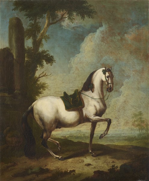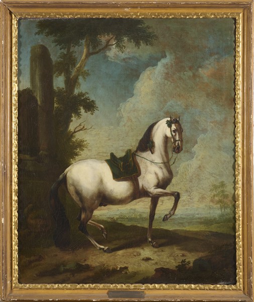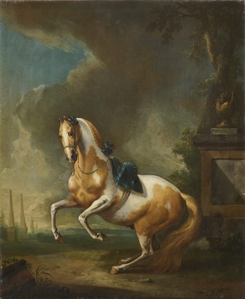Maestro del secolo XVIII Coppia di dipinti raffiguranti "Cavalli rampanti" oli