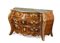 Commode lastronata, filettata ed intarsiata in bois de rose, bois de violette e legno chiaro. Fronte mosso e bombato a quattro cassetti di cui due in linea. Montanti e fascia sagomati e decorati da guarnizioni in bronzo dorato. Piano in marmo verde sagomato con bordo gradinato. Svezia, secolo XVIII (cm 136x86x55) (lievi difetti)