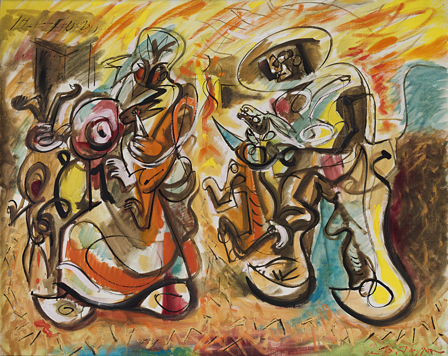 André Masson , Balagny-sur-Thérain 1896 , Parigi 1987 "Le tueurs de lapins" 1966 olio su tela, cm 81x100 Firmato in basso a destra. Titolato e datato 1966 al retro Provenienza Galerie Louise Leiris, Parigi Collezione privata, Milano
