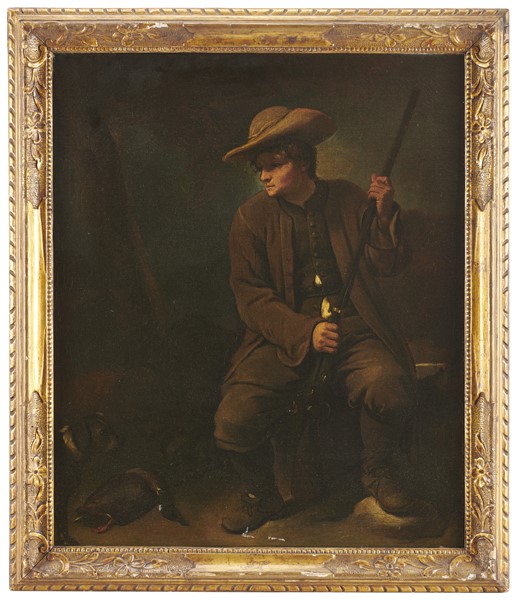 Pietro Longhi (attr.) "Cacciatore a riposo" olio su tela (cm 60,5x50) in cornic