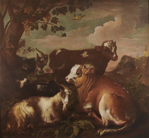 Giovanni Agostino Cassana "Armenti in un paesaggio" olio su tela (cm 194x210) fi