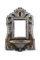 Silver frame with shelf, upper part decorated with woven ribbons and flowers, cymatium centered by oval medallion, shelf partly engraved with lanceolate leaves. Malta ? , early 19th century. It also hallmark stamps of Swedish import of the 20th century (g 1600) (cm 52x36) (defects)
