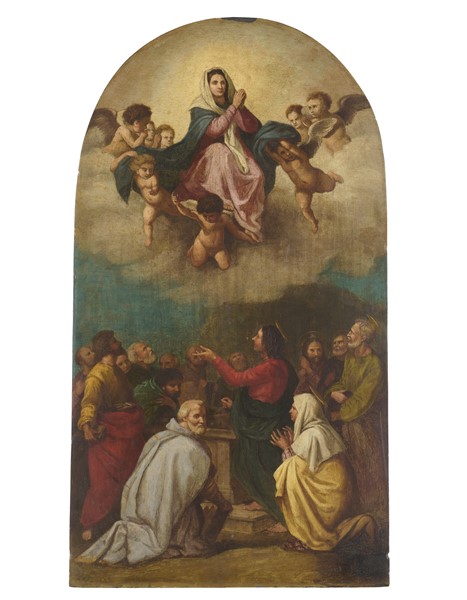 Scuola del secolo XVII, da Andrea del Sarto "Assunta Passerini" olio su ardesi