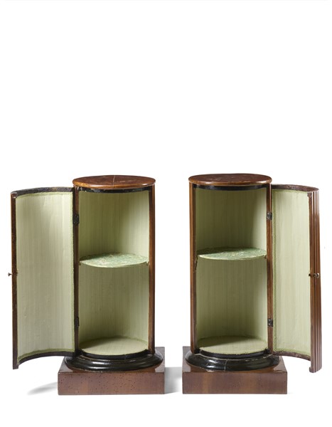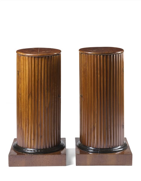 Coppia di comodini a colonna scanalata ad un'anta, su base quadrata. Secolo XIX (h. cm 79) (restauri)
